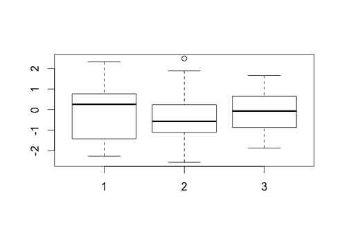 boxplot(dat1,dat2,dat3,names=c(“dat1″,”dat2″,”dat3”),col=”gray”) #箱ひげ図の作成